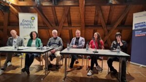Das Energiebündnis Leutkirch e.V., Umweltkreis und NABU Leutkirch e.V. sowie das Regionale Energieforum Isny haben zu einer Podiumsdiskussion zu einer Podiumsdiskussion zu energie- und umweltpolitischen Themen im Bocksaal in Leutkirch eingeladen. REFI Vorsitzender Dr. Guntram Fischer (Bild Mitte) moderierte. Dazu hatte er sich in der Vorbereitung mit den entsprechenden Passagen in den Wahlprogrammen der Parteien auseinandergesetzt und fasste diese bei der Kandidatenvorstellung zusammen.