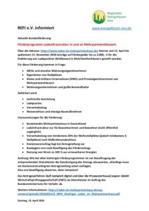 Über die Adresse: www.laden-im-mehrparteienhaus.de können seit 15. April bis spätestens 15. November 2026 Anträge auf Fördergelder bis zu 2.000,- € für die Etablierung von Ladepunkten (Wallboxen) in Mehrfamilienhäusern gestellt werden.
